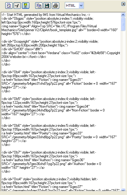 In the Code View Window, you can view, copy, or print your project’s underlying HTML or SVG code.