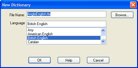 File Name Enter a name of the *.tlx file that will hold the contents of the new dictionary. You may use the Browse button to display a dialog showing the names of other dictionary files.