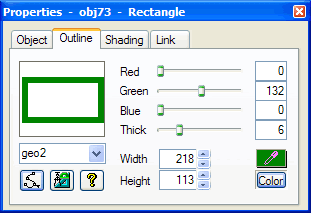 Use the Outline Tab on the Quick Properties Editor dialog box to quickly adjust an object’s geometry. You may also use the Outline Tab to apply borders to image objects.