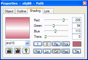 | Trans. | Click and drag the slider left or right to adjust the transparency of the selected shading. Or, you may enter a transparency value in the field. Note that some object types like text and tables that do not support gradients, do not support transparency either. |