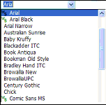 Font Selection &endash; Select from the drop-down menu a font to apply to highlighted text in the Text Editor dialog box. The menu offers all fonts available on your system. (Not available in Code Edit Mode.) |